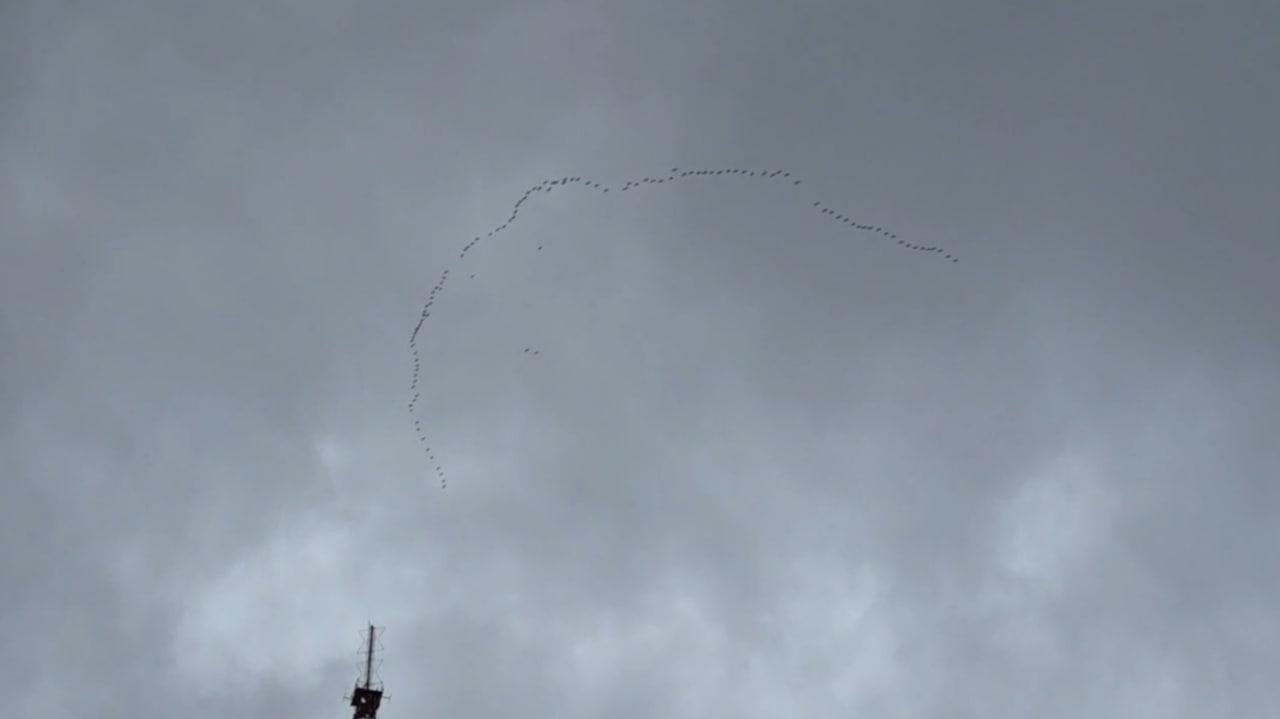 Косяк гусей над уфимским телецентром